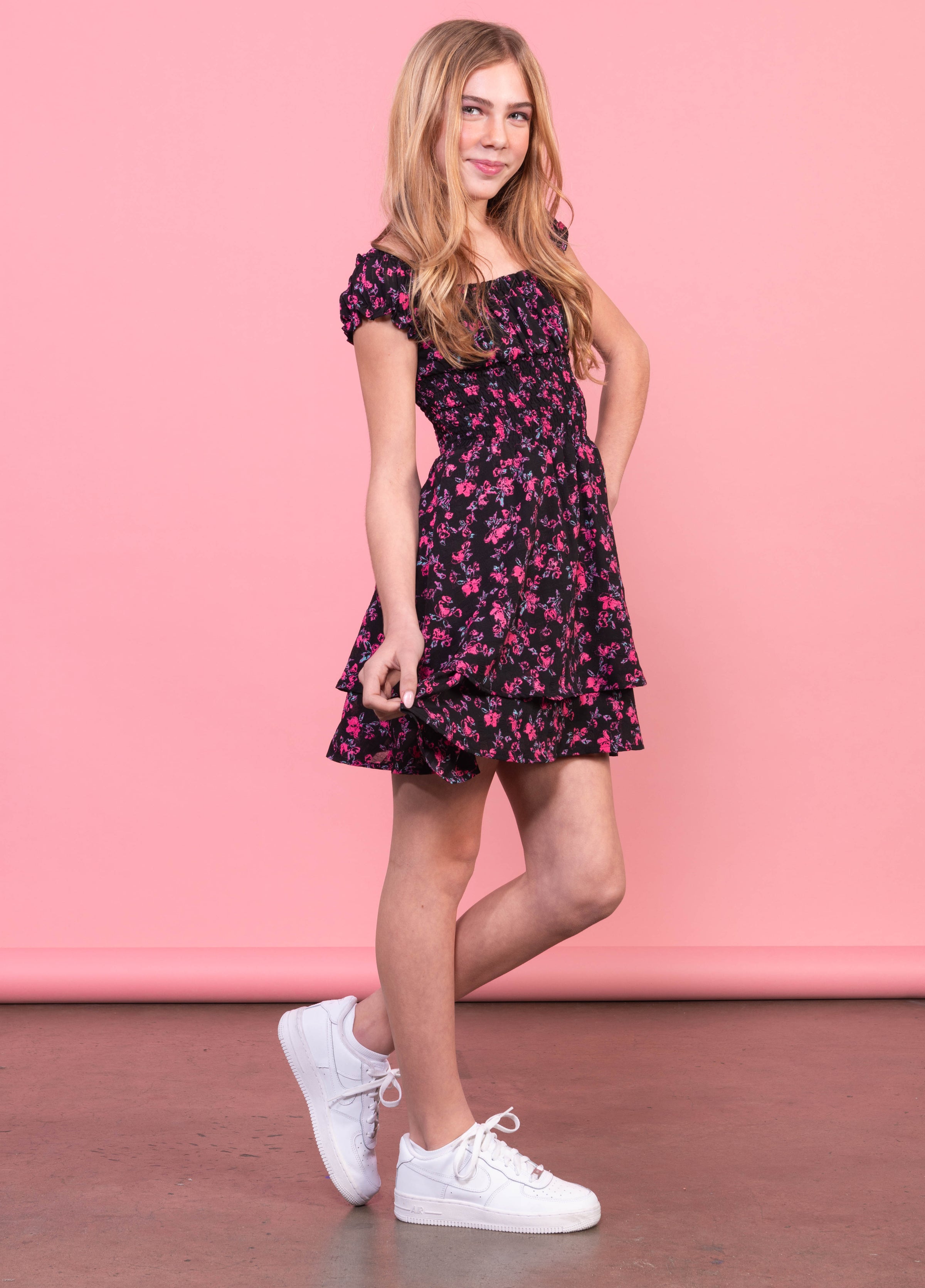 Effortlessly chic, the SAGE On/Off Shoulders Tiered Ruffle Dress features a versatile design that can be worn on or off the shoulders. The smocked waist adds a flattering touch, while the tiered skirts make it a trendy choice for back to school tweens.